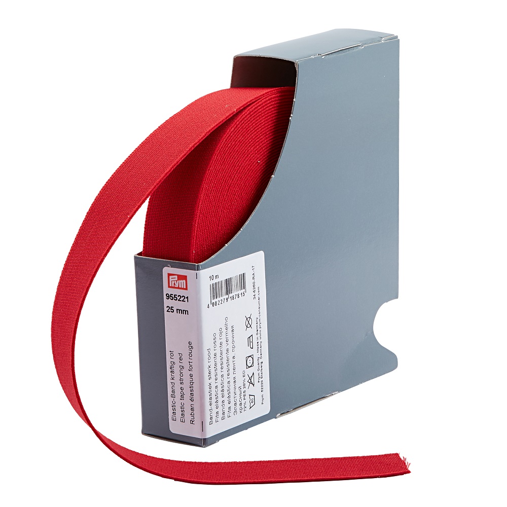 Banda elastic puternic, rosie. Tesatura (continand fire de cauciuc) are proprietatea de a-si reveni la forma initiala după ce a fost momentan deformata. Se foloseste pentru confectii, imbracaminte, incaltaminte, tricotaje. Latime: 15 mm. Calitate deosebita oferita de PRYM Germania. Pretul se refera la un singur produs ce contine 10 m .