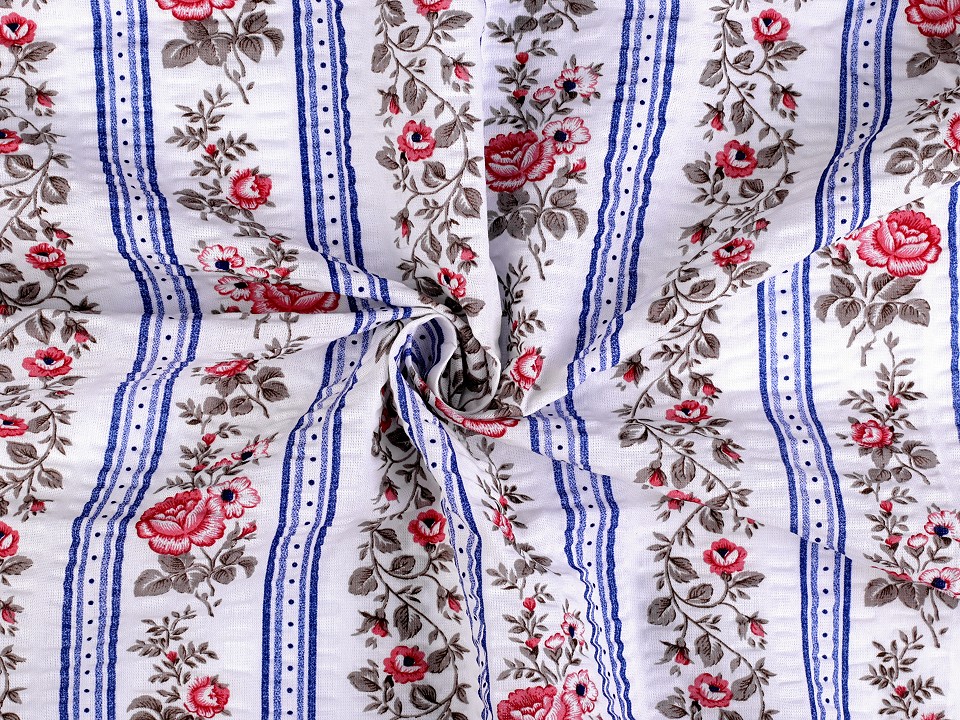 Bumbac creponat cu motiv floral