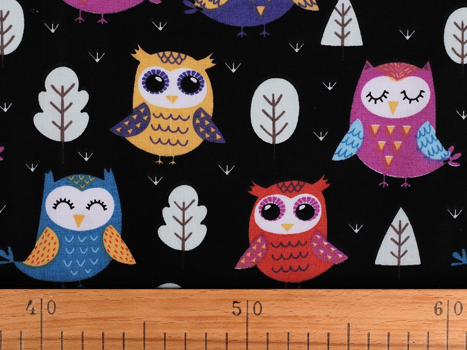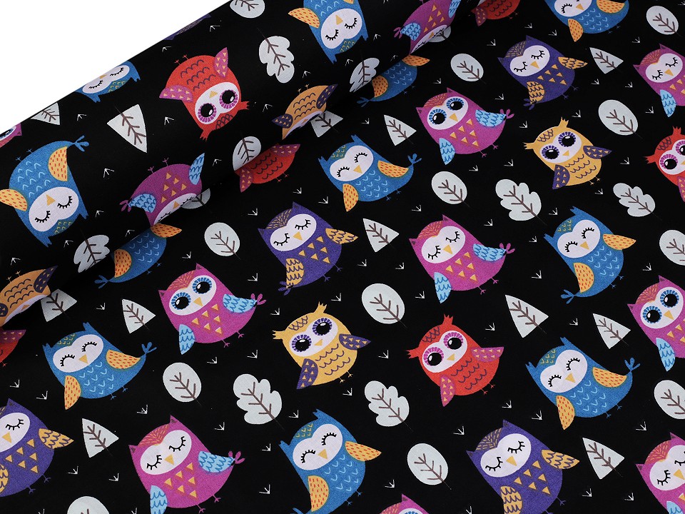 Bumbac imprimat cu motiv bufnita.Tesatura de bumbac se poate folosi pentru realizarea de perne, de cearsafuri, de perdele etc..Pretul afisat este pentru un metru liniar.