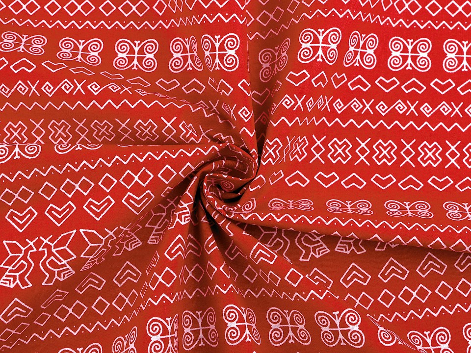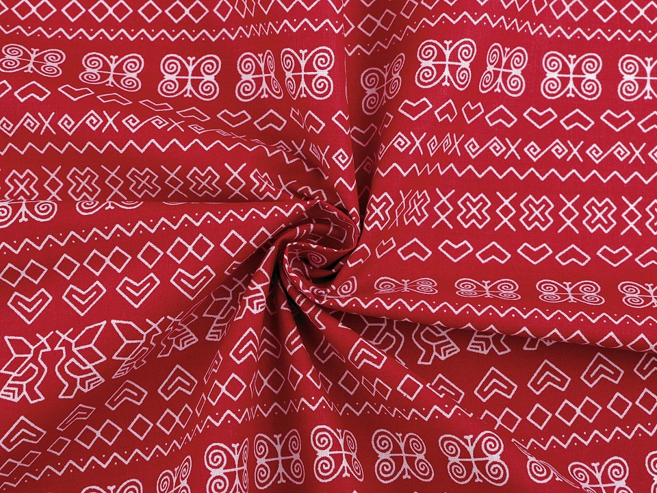 Gramaj: 110 - 115 g/m²; Latime: 140 cm; Contractie la spalare: 3 - 5 %; Cant. minima: 1 m; Compozitie: 100% bumbac; Tehnica: coaserea costumelor populare, coaserea decoratiunilor interioare, cofectii masti respiratorii, cusut, patchwork; Stiluri: Folclor, Rustic;Intretinere