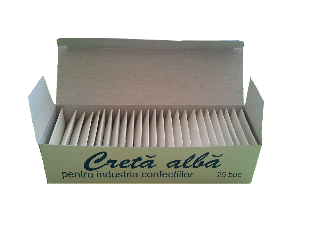 Creta croitorie alba , cutie 25 buc Forma dreptunghiulara specifica cu laturile exterioare subtiri pentru a putea marca materialul textil . Utilizare: Acest tip de creta, se utiliza in industria confectiilor pentru a realiza diverse marcaje pe suprafata materialului textil. Datorita formei sale creta permite executarea unor marcaje fine dar si a unora mai groase. Astfel se pot realiza marcaje exacte pentru realizarea produsului textil. Caracteristici: Stergere prin periaj Nu lasa urme, semne in urma stergerii Se recomanda testarea pe un esantion de material inainte de utilizare
