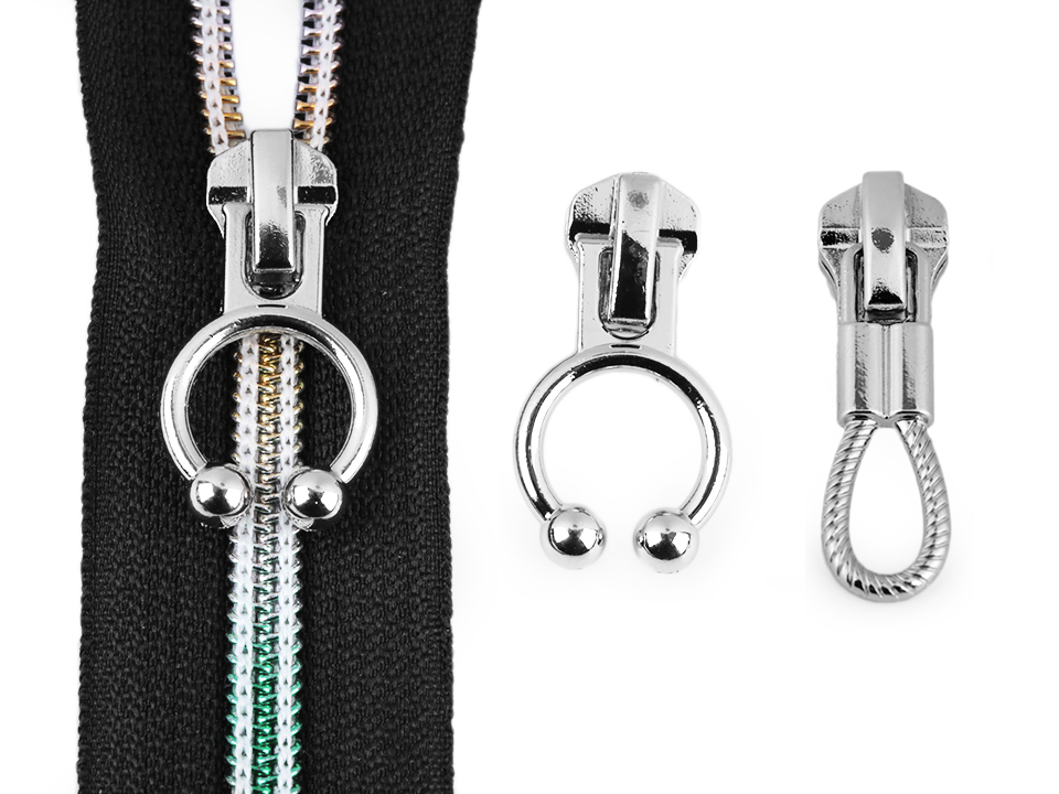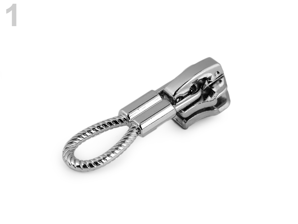 Sliderul metalic cu mâner de proiectare este proiectat pentru fermoarele în spirală. Se remarcă pe tricouri, rochii și jachete. Opțiunea 1 este pentru fermoar, găsită sub cod ST050714 (numai pentru culoarea neagră).Opțiunea 2 este pentru fermoar, găsită la codul ST750503.