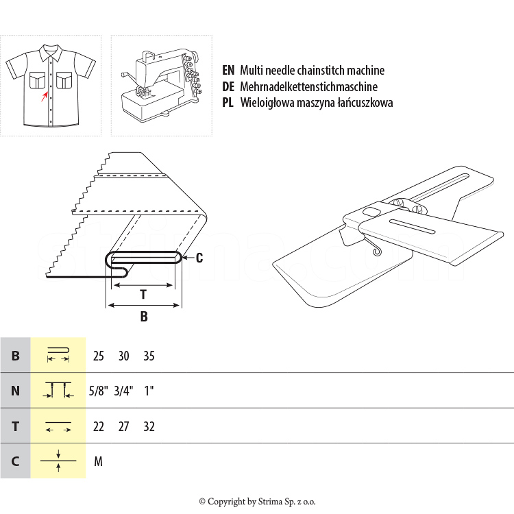 Se foloseste cu masina de cusut multi ace la confectionarea de camasi.