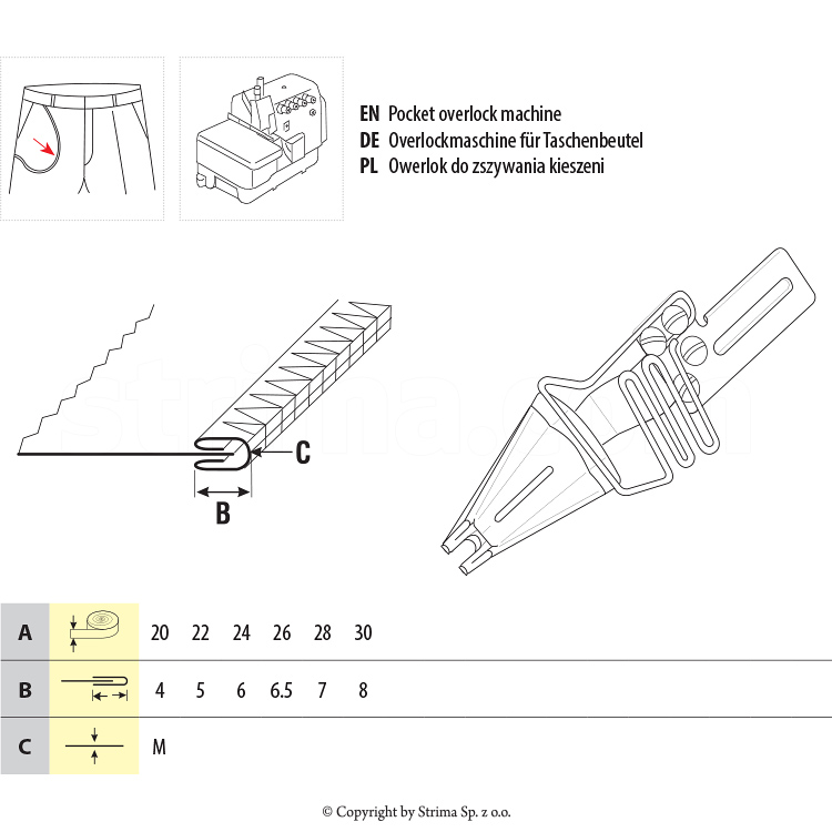 Se foloseste pe masina de surfilat Juki la aplicarea bentitei duble la buzunarul pantalonilor , fustelor, etc.