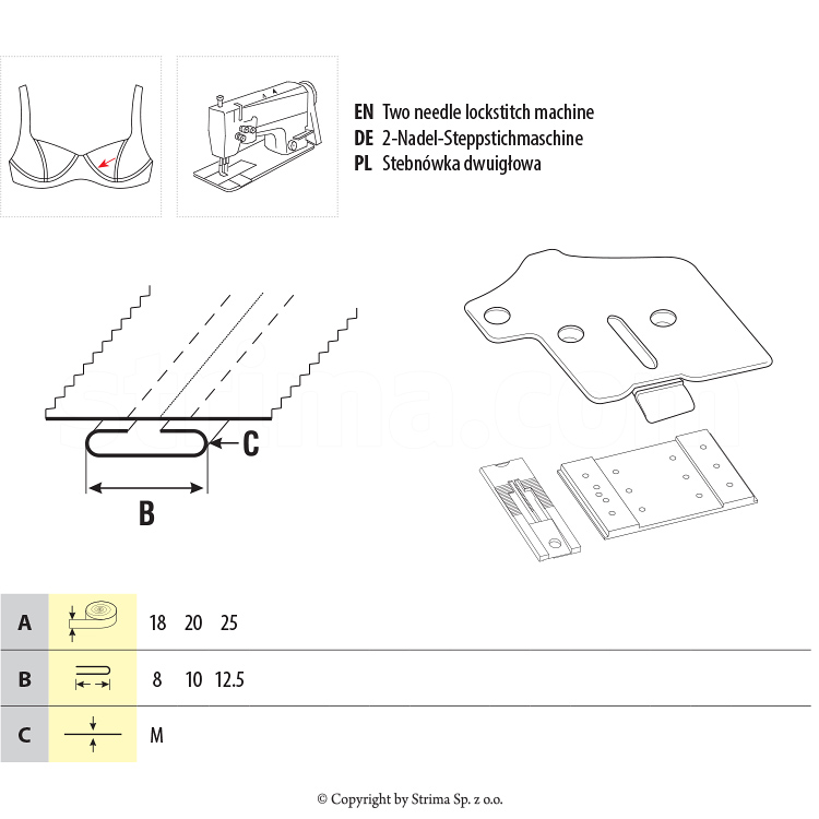 Se foloseste pe masina cu doua ace la confectionarea de lenjerie intima si costume de baie etc.
