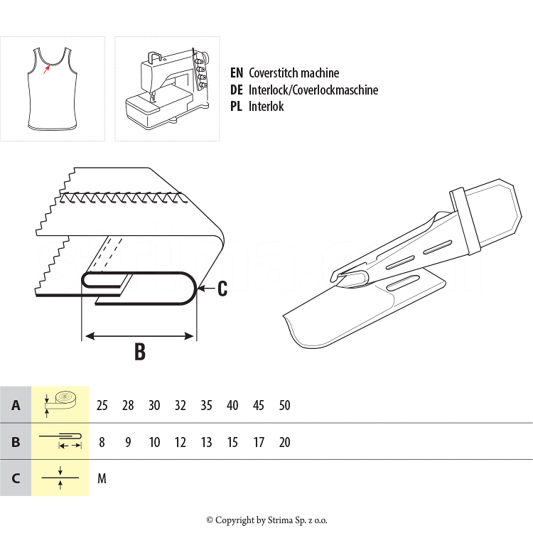 Se foloseste pe masina de acoperire plana la confectionarea lenjerie intima, maieuri, tricouri, etc.