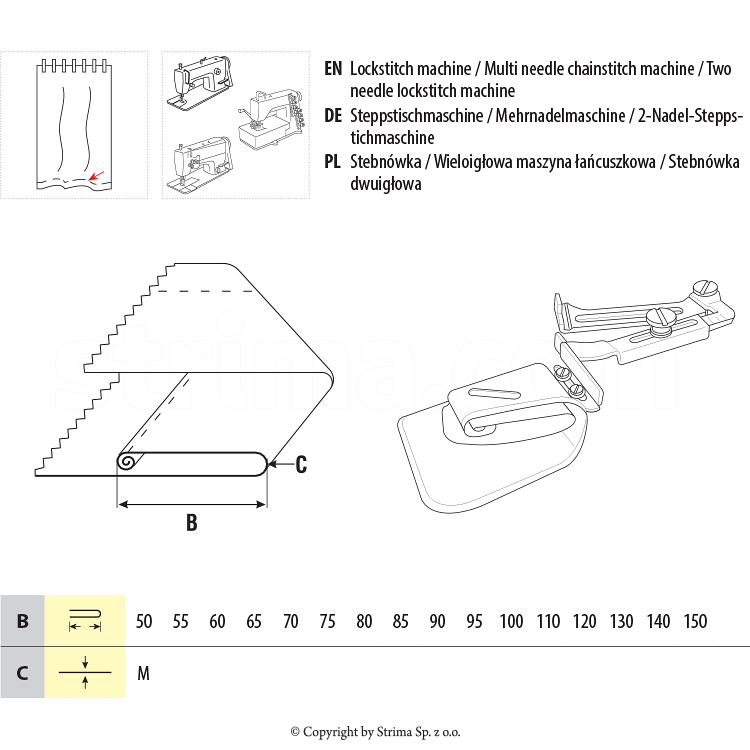 Se foloseste pe masina liniara cu simpla, 2 ace sau mai multe, la confectionarea de perdele etc.