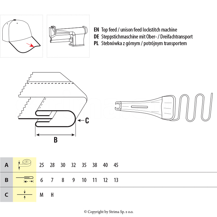 Se foloseste pe masina dublu transport cu un ac la confectionarea de covoare si nu numai..