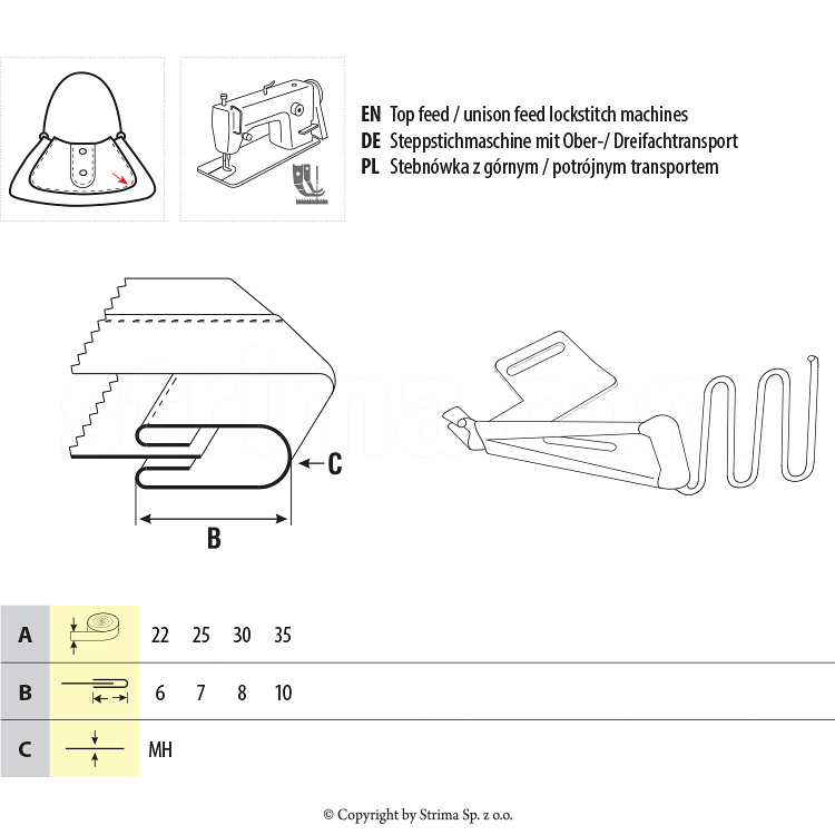 Se foloseste pe masina cu dublu transport cu un ac sau 2 in marochinarie si nu numai.
