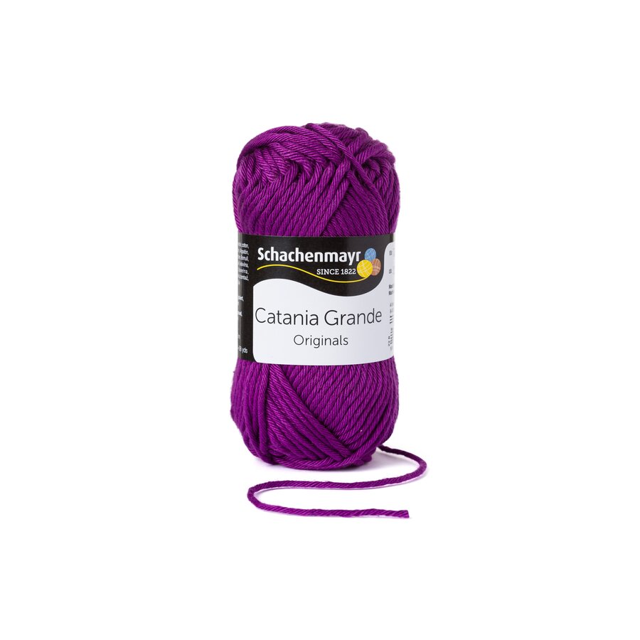 Firul Catania Grande este de doua ori mai mare decat Catania Clasic si se tricoteaza mult mai repede.Acesta este obtinut din 100% bumbac pieptanat mercerizat.Articolele lucrate cu acest fir pot fi purtate indiferent de anotimp.Este firul ideal pentru haine si pentru decoratiuni de casa.Luciul discret si gama larga de culori isi pastreaza stralucirea si intensitatea si dupa spalari repetate.