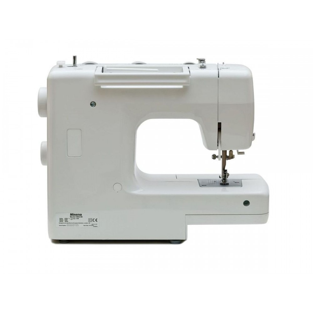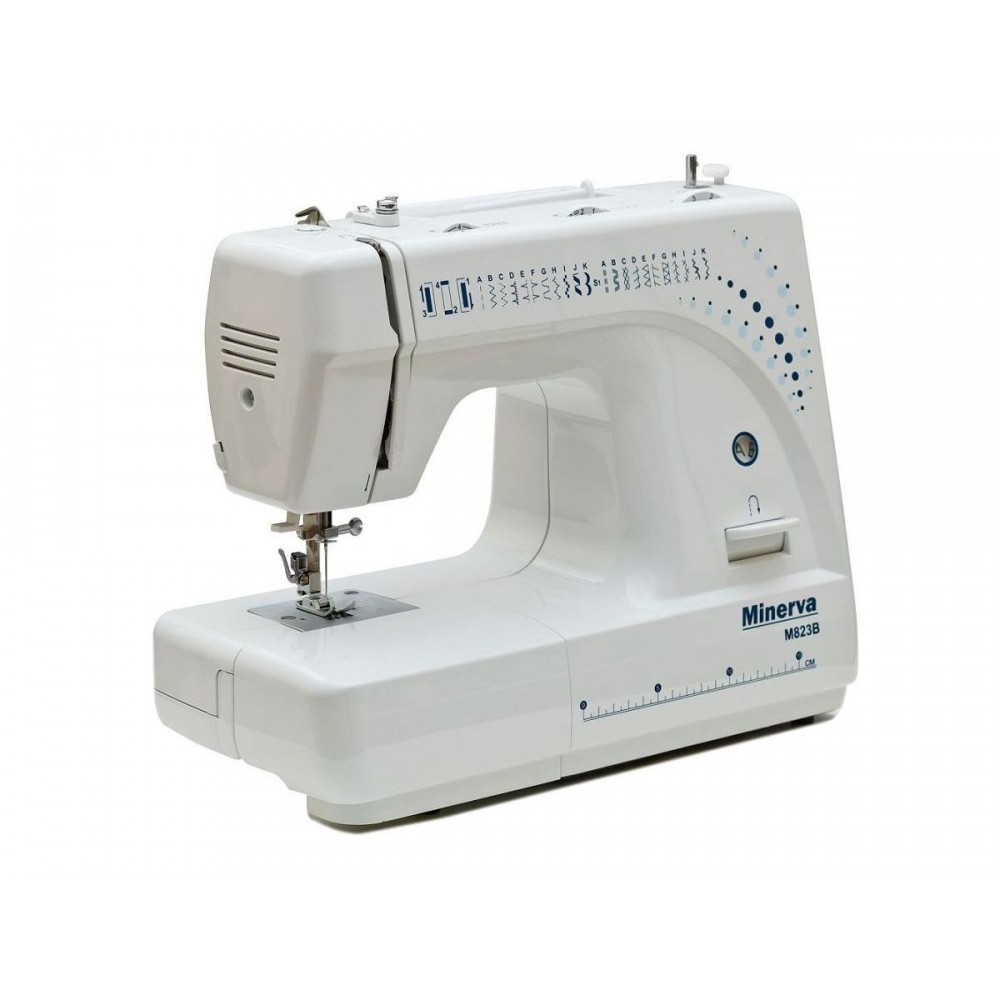 Masina De Cusut Electromecanica Minerva M832B Model 2020, 32 Programe, 800 Imp/Min, 70W, Alb/Albastru.Minerva M832B (model 2020) este o masina de cusut electromecanica cu un design elegant si o varietate mare de functii. Suveica este verticala iar butoniera semi-automata. Butoniera poate fi realizata in 4 pasi cu piciorusul presor special inclus fara a fi necesara intoarcerea materialului. Reglarea tensiunii firului superior si a presiunii piciorusului presor ajuta la coaserea unei game largi de materiale. Pentru intarirea cusaturii de inceput si final este incorporata clapeta de revers (functie de coasere in sens invers). Lungimea maxima a cusaturii este de 4 mm iar latimea maxima a cusaturii este de 5 mm. Acest model detine si un sertar detasabil, care, pe langa posibilitatea de pastrare a accesoriilor, confera si o zona comoda de coasere a articolelor tubulare, cum ar fi mansetele, tivurile, beteliile sau a articolelor de mici dimensiuni. Extrem de utile sunt si taietorul incorporat pe carcasa cat si infiletatorul atei in ac. Aceasta masina vine si cu o husa moale de protectie care acopera masina de cusut atunci cand aceasta nu este folosita. Iluminarea se face prin LED.