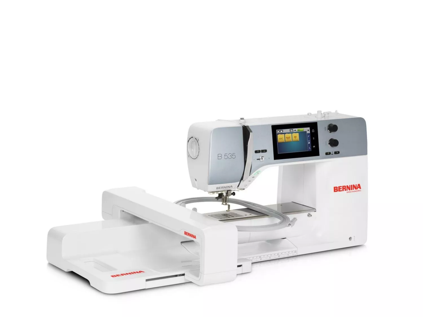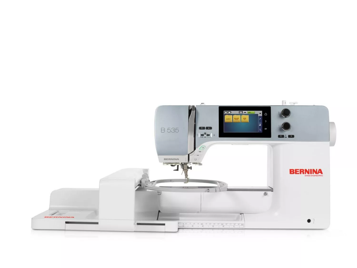 BERNINA 535 din seria 5, produs ECO (economic, ecologic, ergonomic) este modelul perfect pentru persoanele dornice de creativitate sau care doresc sa-si personalizeze proiectele. Avand o gama larga de operatii puteti crea modele speciale de cusaturi decorative, quilting sau broderie. Bernina 535 caracteristici principale:Generale:Port USB pentru pentru conectarea masinii la calculatorPort USB pentru Stick de MemorieFunctia de memorare va ajuta sa salvati o gama larga de combinatii de cusaturi pe care le puteti folosi si la alte proiecte viitoareFunctia de memorare va ajuta sa salvati o gama larga de combinatii de cusaturi pe care le puteti folosi si la alte proiecte viitoareDisplay color 10 cm, touchscreen Dioda (emitator de lumina organica, unde sunt afisate setarile pentru cusatura selectata sau mesajele de eroare pentru operatiunile incorecteIluminarea zonei de coasere cu lumina alba si rece, cu 12 LED-uri - pentru o vizibilitate imbunatatita a zonei de lucru (nu oboseste ochiul atunci se coase mult sau se cos materiale de culoare inchisa)Sistemul semi-automat de infilare in ac - trebuie doar sa urmati ghidul de infilare desenat pe masina, sa coborati parghia si acul este infilatSistem automat de taiat ata – util si rapid prin o simpla aparase a butonului de taiat ataGlisiera pentru reglarea vitezei permite modificarea vitezei chiar si in timpul functionarii masiniiDistanta bratului liber de 21,5 cm pana la punctul de coasere este foarte util pentru cusaturi pe materiale mari tip Quilting si nu numaiAx suplimentar folosit pentru a doua papiota pentru cusaturile in doua culori si nu numaiBobinator independent pentru o incarcare rapida a bobinelor chiar si in timpul coaseriiGenunchiera este comanda la genunchi cu ajutorul careia puteti ridica sau cobora piciorusul avand astfel mainile libereBlatul de lucru cu masa detasabila – masa se indeparteaza atunci cand doriti sa executati cusaturi de bucati cilindrice (maneca, crac de pantalon, etc.)
