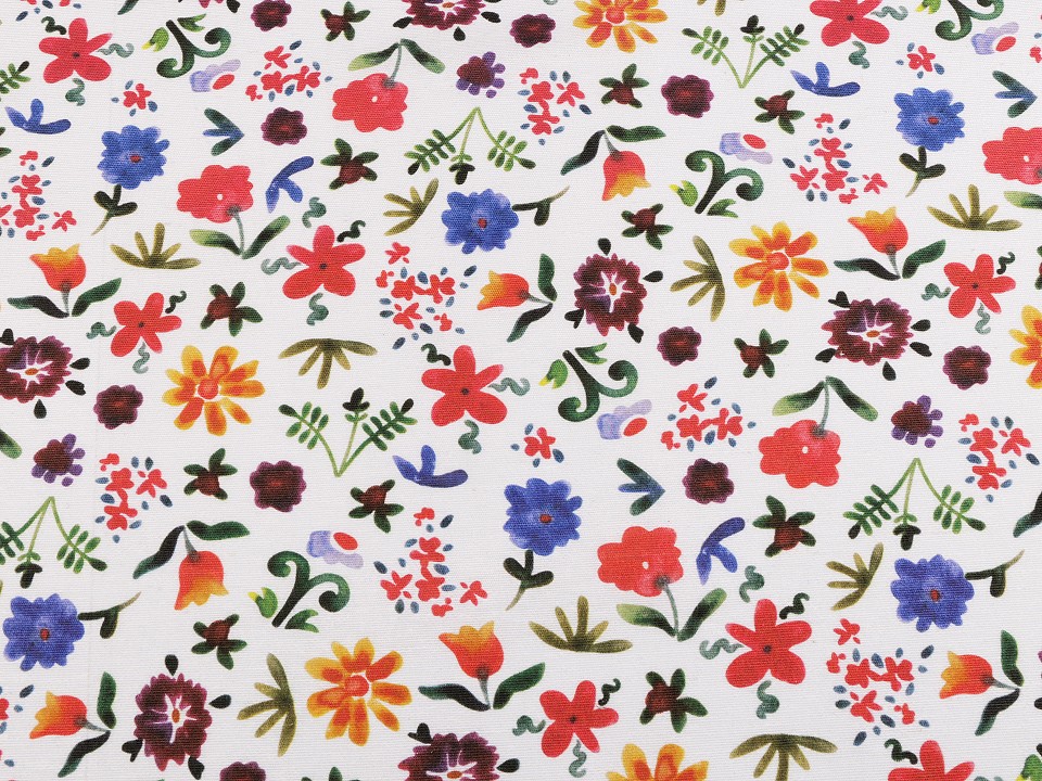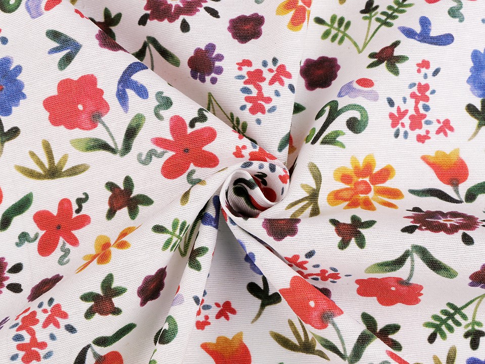 Material bumbac imprimat cu motive florale. Acest material din bumbac poate fi folosit pentru a realiza fete de masa, covoare, fete de perna, pungi, perdele, decoratiuni etc..Fabricat in SpaniaPretul afisat este pentru un metru liniar.