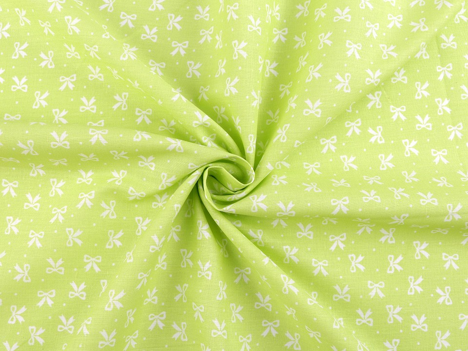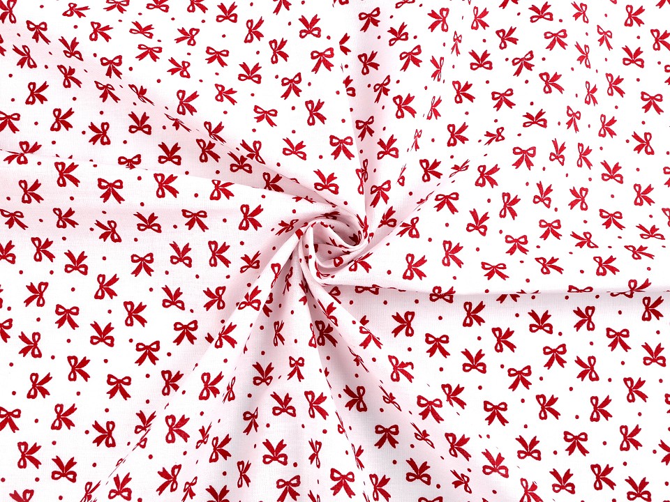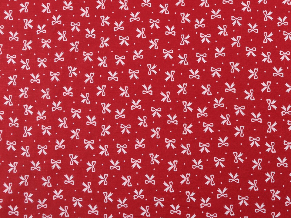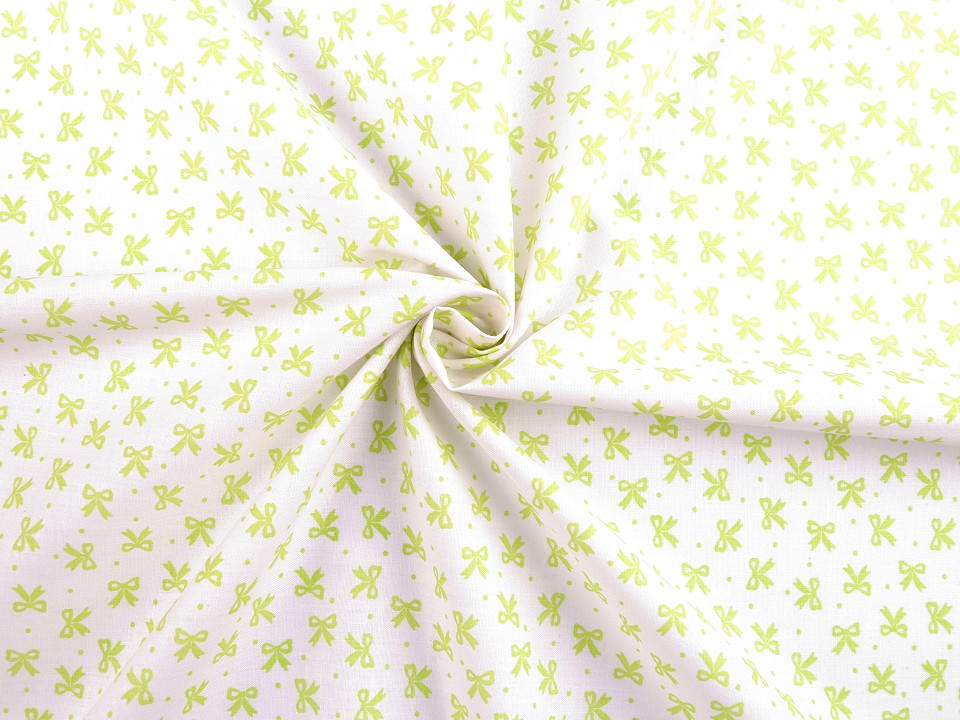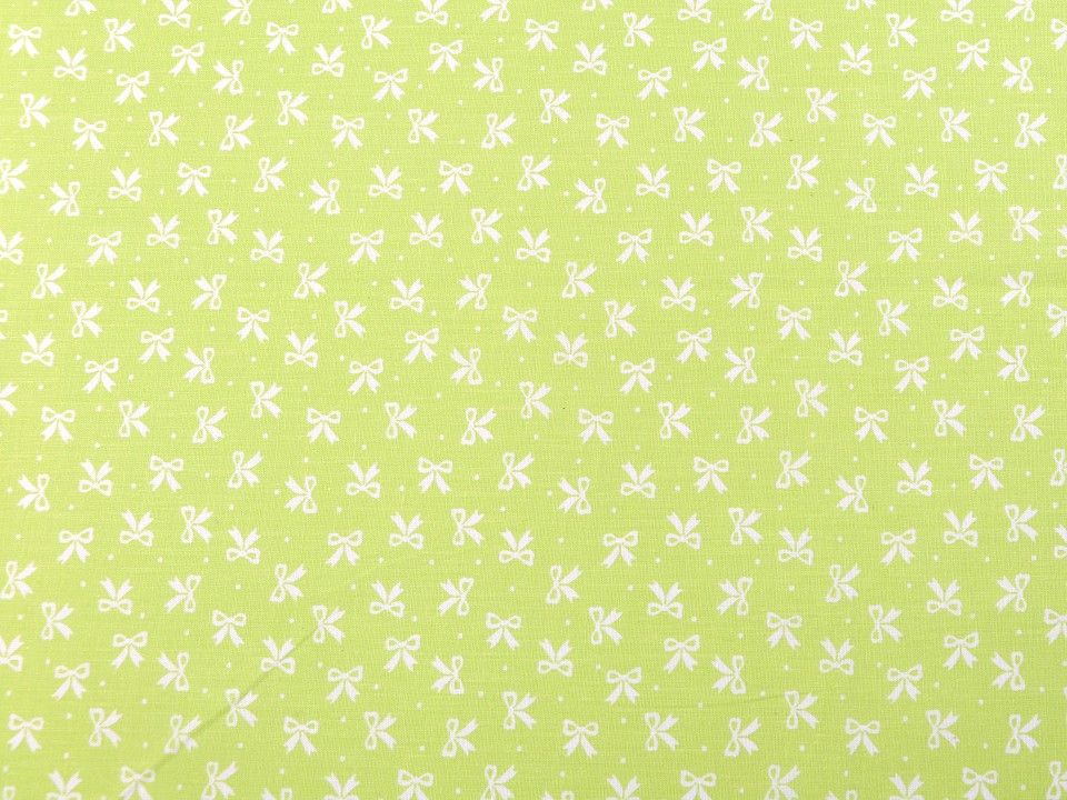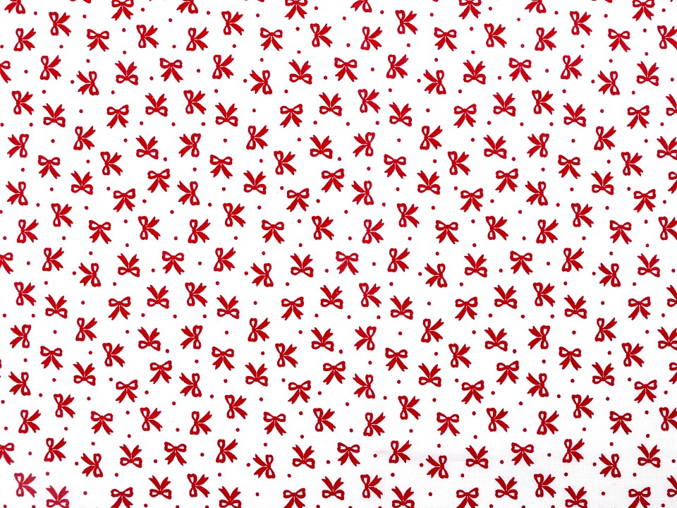 Material din bumbac cu fundite potrivit pentru a confectiona perne, fete de masa, asternuturi, perdele etc..Pretul afisat este pentru un metru liniar.