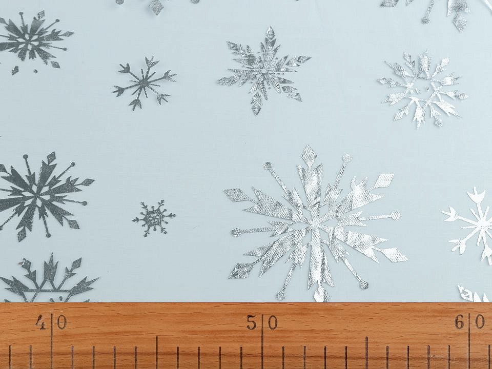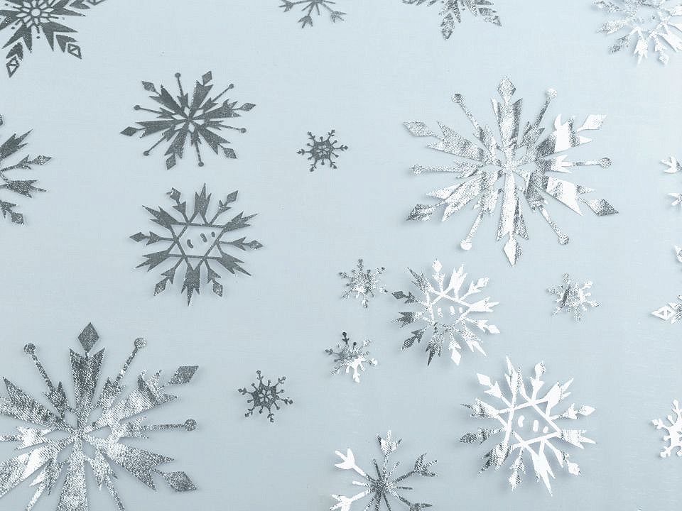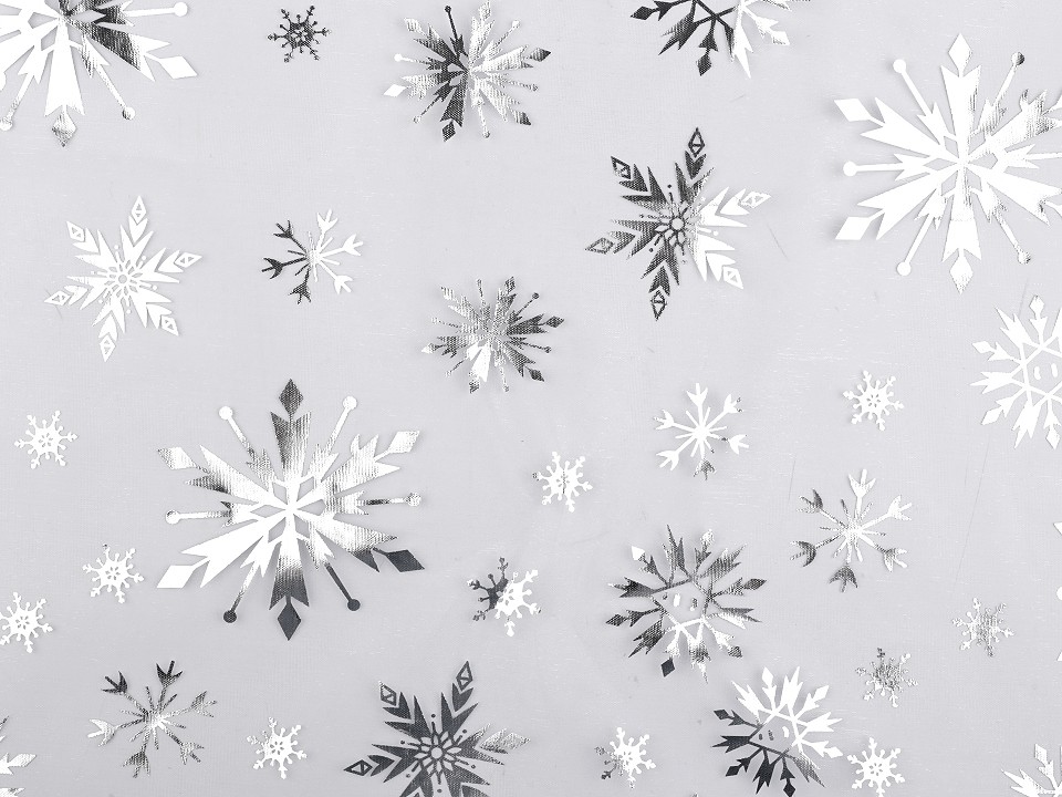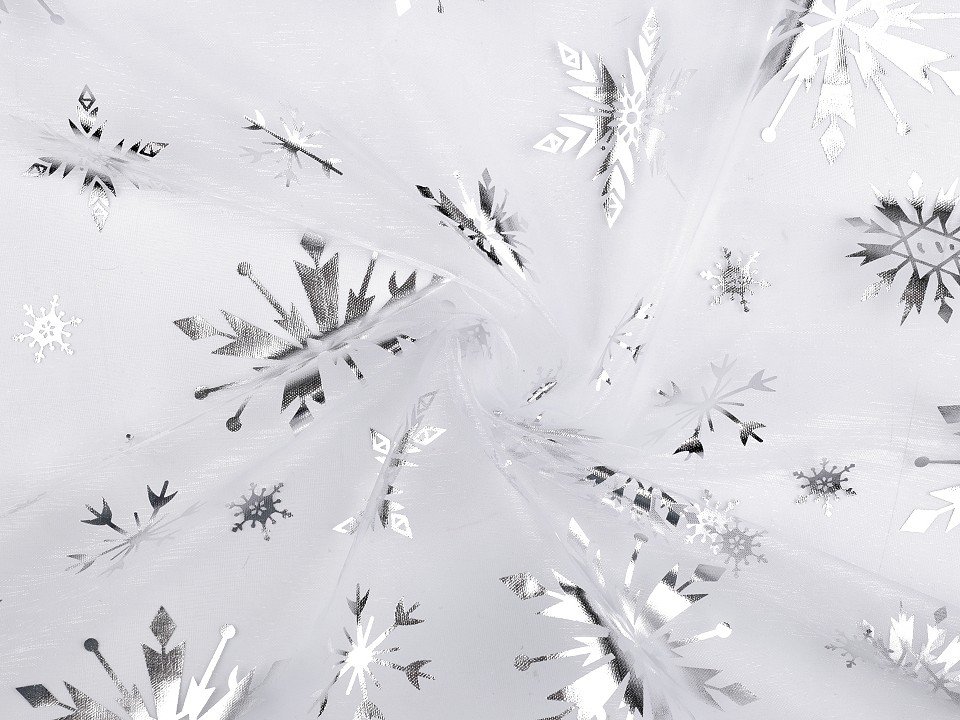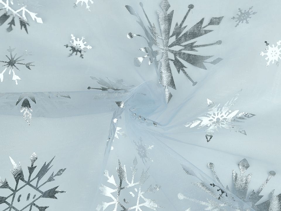 Organza fulgi de zapada potrivita pentru realizarea de costume de carnaval, aranjamente de Craciun etc..Pretul afisat este pentru un metru liniar.