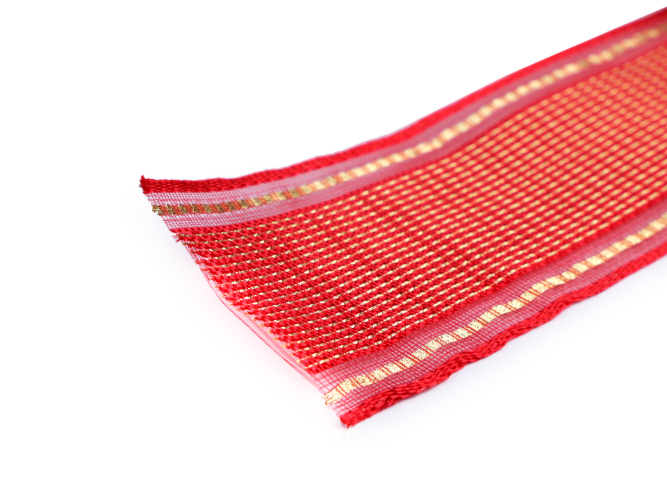 Panglica elegantă este decorată cu lurex strălucitor pe ambele părți și în mijloc. Firul metalic din părțile laterale asigură o formabilitate excelentă. Panglica este cu două fețe. Utilizare: Panglica este potrivită pentru decorațiunile de Crăciun sau ambalarea originală a cadourilor. Panglica se modelează perfect. Puteți, de asemenea, să o folositi pentru diferite coroane și ikebane.Lăţime: 40 mm Rolă/Bobină: 25 m Decorativ Compoziţie 47% poliester 35% acetat 10% vâscoză 8% metal feros Tehnica ambalare cadouriconfecționarea decorațiunilor floristica aranjamente Craciun Întreținere