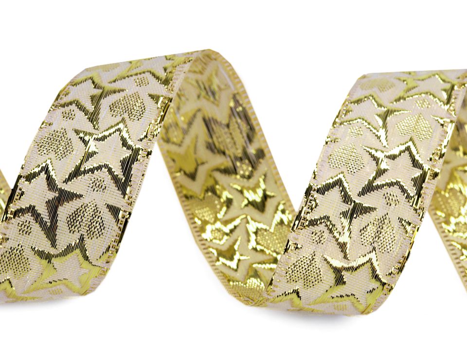Panglică decorativă cu lurex, motiv steluțe, lătime 25 mm ST430381