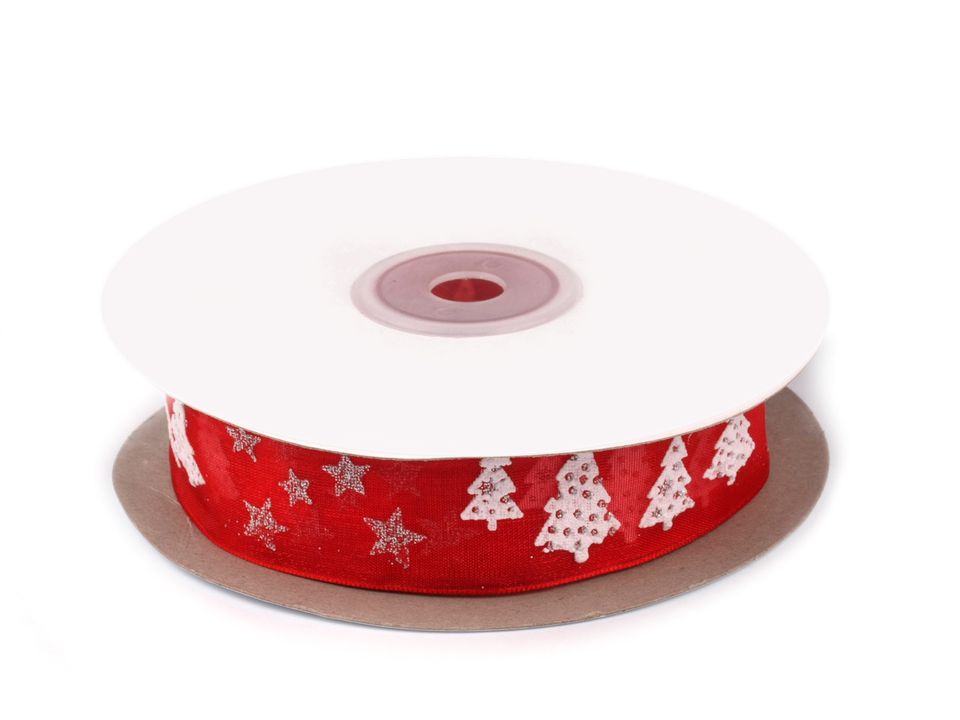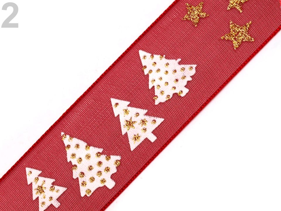 Panglică decorativă organza, motiv brăduți, lățime 27 mm ST420966