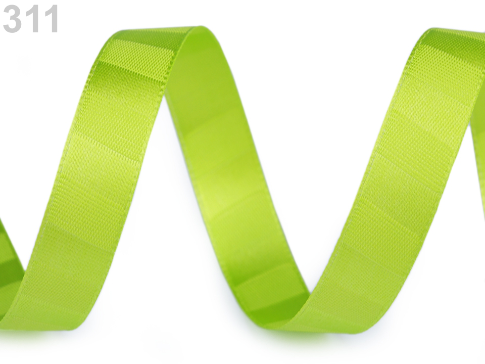 Panglică cu dungi lucioase. Utilizare: Panglica va arăta frumos la decorațiunile de Paște. Puteți, de asemenea, să o aranjați pentru ca coroanele și ikebana să capete eleganță sau chiar să vă împachetați cadourile cu ea. Poate avea 1 tăietură la înfășurare.Lăţime: 15 mm Rolă/Bobină: 20 m Decorativ Față dublă Compoziţie 100% poliester Tehnica ambalare cadouri aranjamente Pastefloristica Întreținere