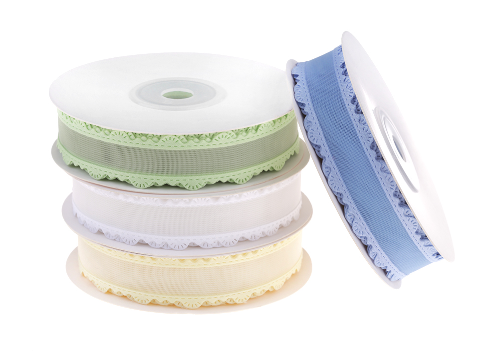 Panglica monofilament are muchii întărite cu margini decorative din dantelă. Utilizare: Puteți utiliza panglica ca decor pentru aranjamente de flori, pentru a însemna ghivece de flori, etc. De asemenea, puteți înfășura eficient cadourile cu ea.Lăţime: 20 mm Rolă/Bobină: 13,5 m Decorativ Compoziţie 100% poliester Tehnica aranjamente nuntă confecționarea decorațiunilor aranjamente Pastefloristica Întreținere