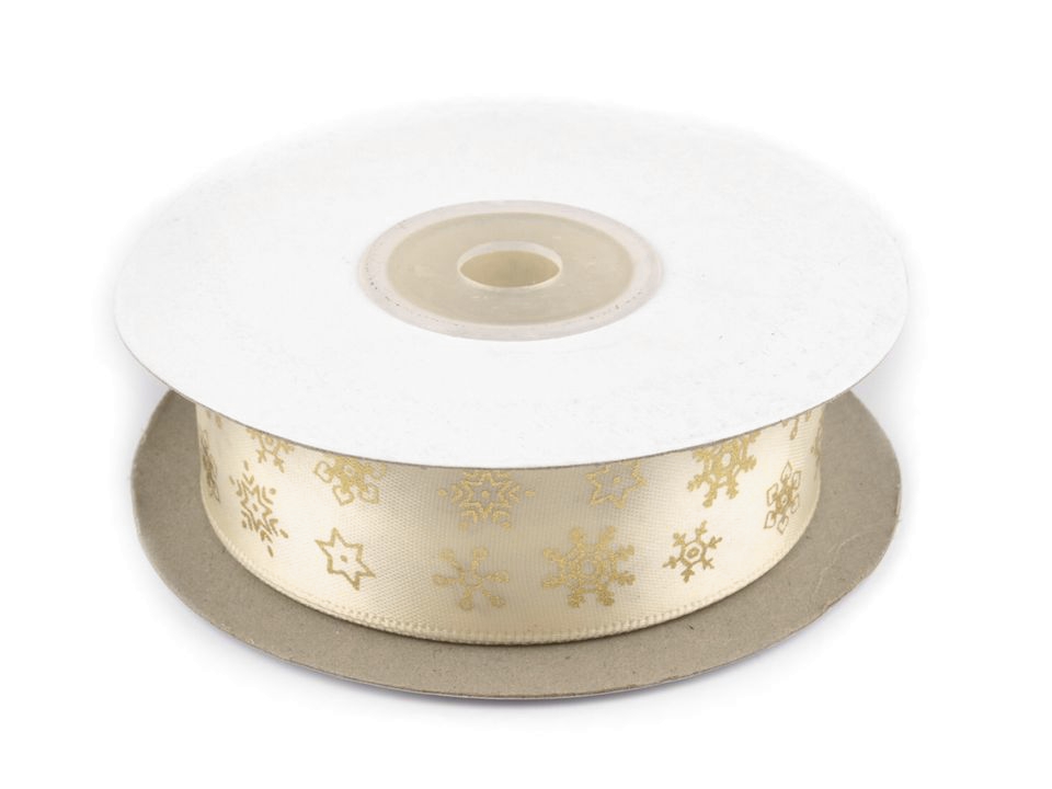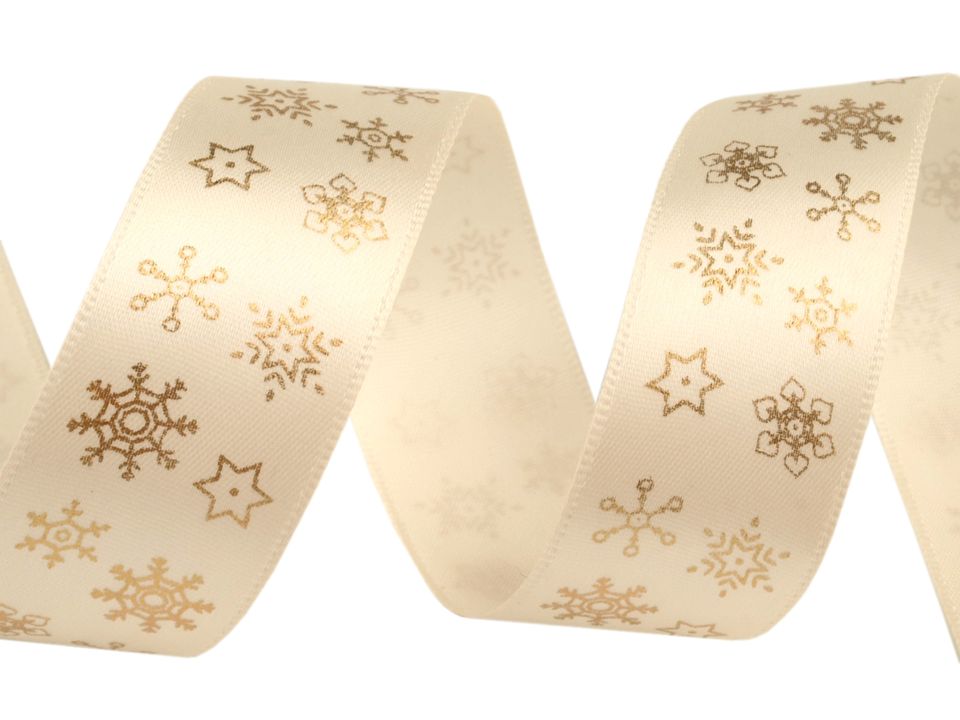 Panglică satinată, motiv fulgi de nea, lățime 25 mm ST420942