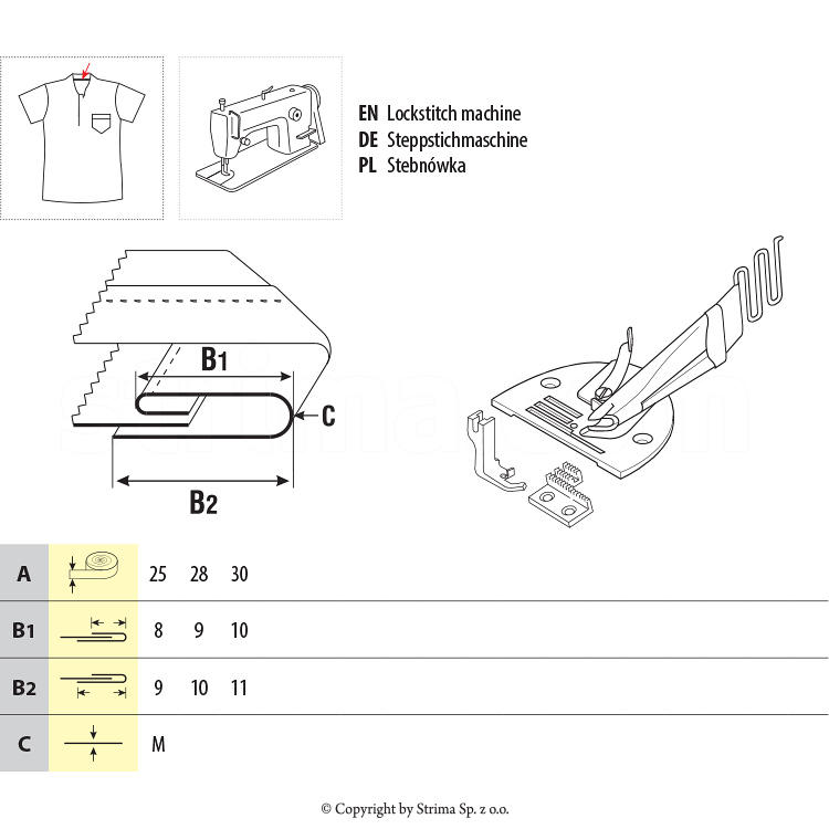 Set compus din piciorus, placuta, transportor si dispozitiv.Se foloseste pe masina liniara la confectionarea de lenjerie intima, maieuri, tricouri, etc.