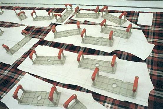 Suporti VEITH SYSTEM de fixare a spanului Suportii de span sunt un ajutor practic pentru fixarea spanului si incadrarii saua sabloanelor. Acele care patrund in span vertical, de sus in jos, impiedica deplasarea foilor de span. Acest lucru este important la transportul spanului si la croitul la masina de croit cu banda sau cutit vertical. Calitatea va fi imbunatatita, deoarece suportii de fixare a spanului pot ramane fixati in span in timpul croitului.