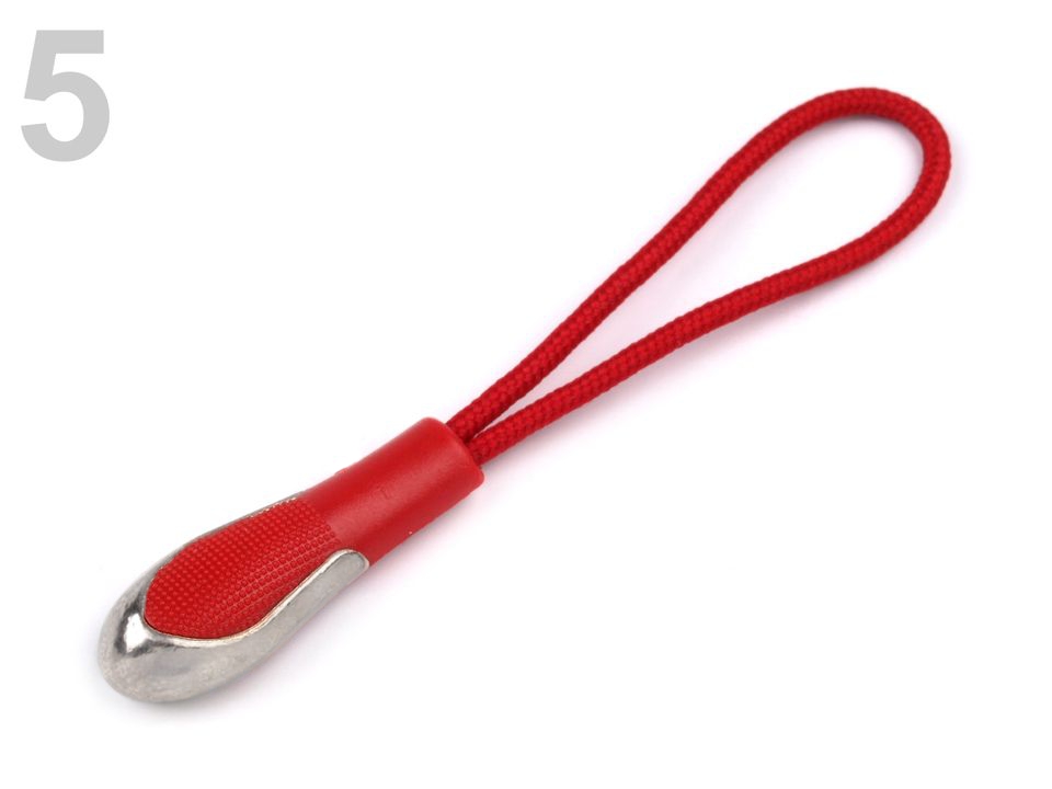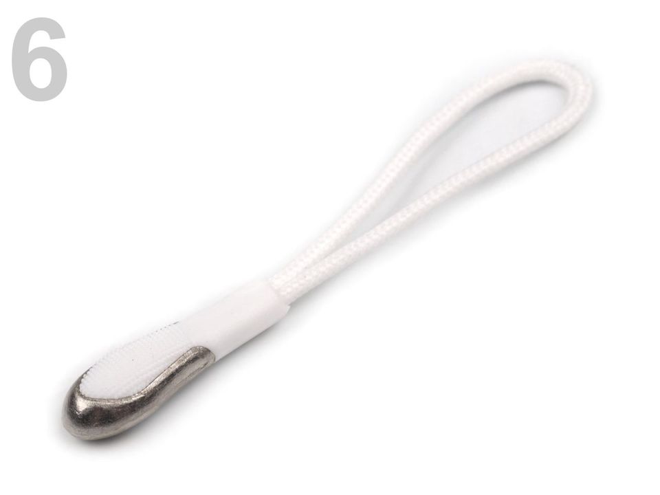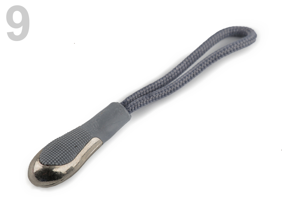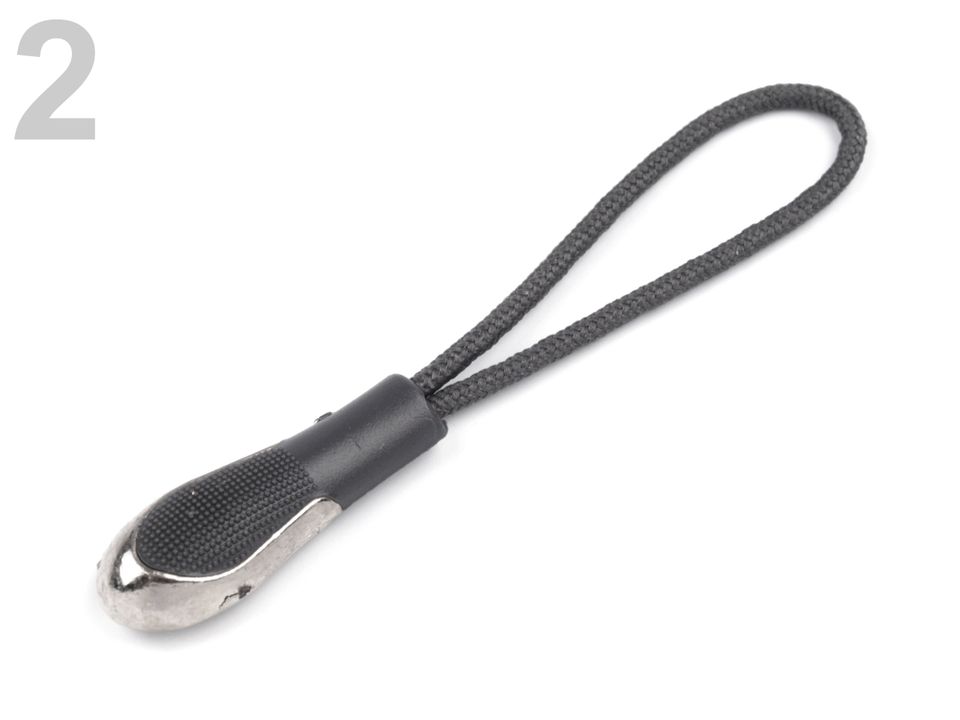 Buclă de design modern pentru a se potrivi mai bine cu glisorul de pe fermoar. Este format dintr-o tijă sub formă de picătură cu garnitură metalică în partea inferioară a unui cordon de poliester. Puteți utiliza, de asemenea, pentru chei, telefon mobil, poșetă, etc. Dimensiunile pieselor din plastic sunt de 9 x 25 mm.