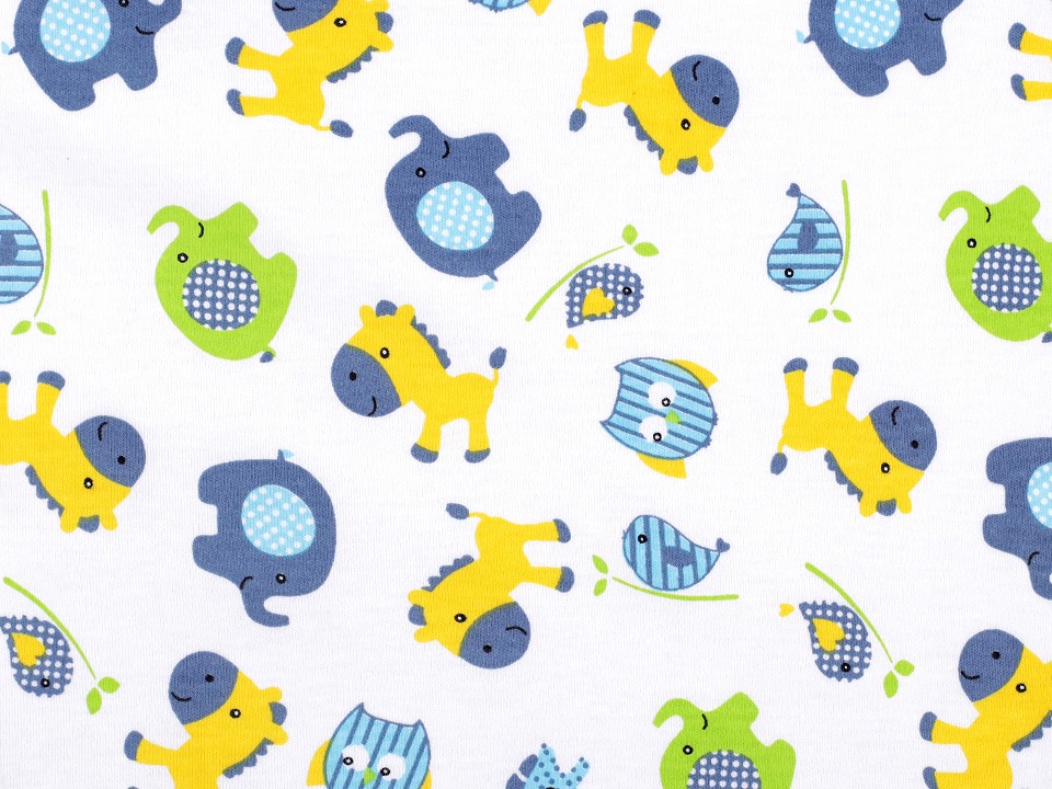 Tricot din bumbac organic cu motive pentru copii.Acest material este placut la atingere si este folosit pentru realizarea de imbracaminte pentru copii, de tricouri, de pantaloni de trening, de hanorace etc..Pretul afisat este pentru un metru liniar.
