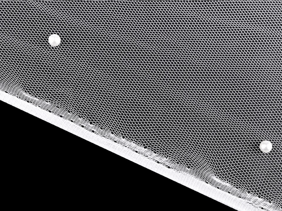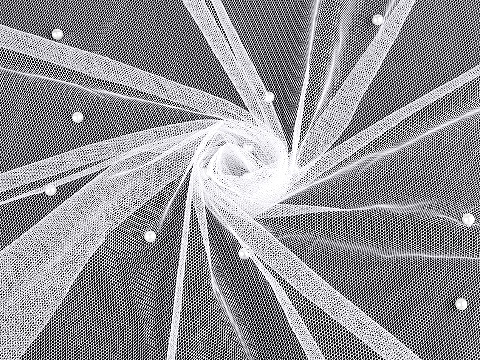 Tul fin cu perle perfect pentru confectionarea voalurilor de mireasa, a rochiilor, a fustelor etc..Perlele au un diametru de 6 mm.Pretul afisat este pentru un metru liniar.